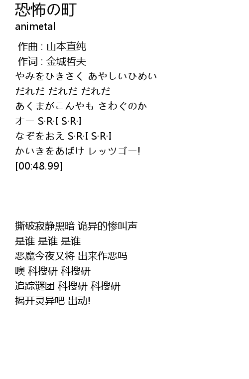 | [00:37.51] | なぞをおえ S·R·I S·R·I |