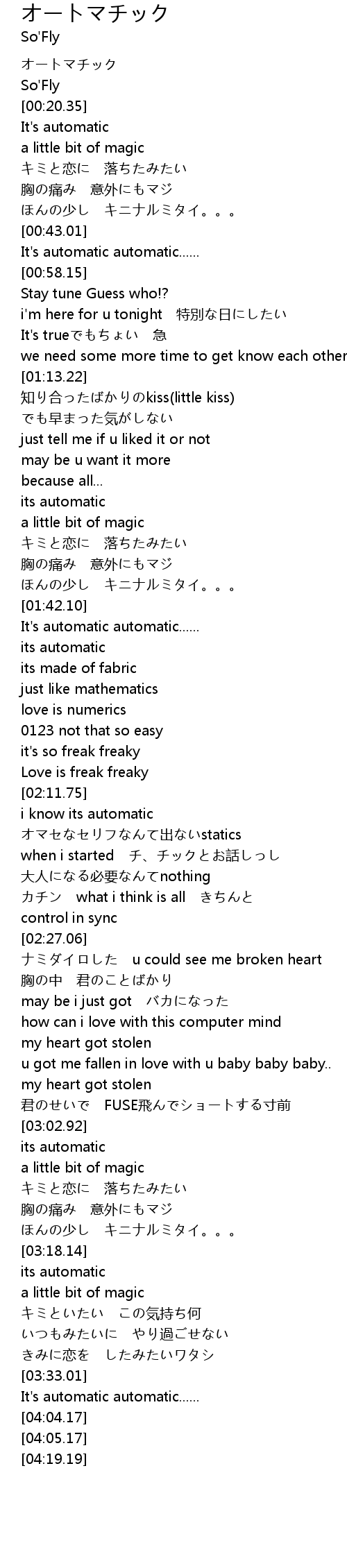 | [00:43.65] | It' s automatic automatic...... |