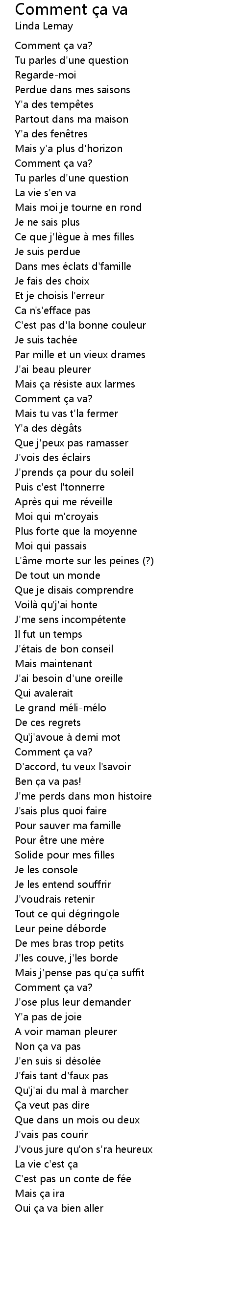 | Song | Comment ça va |