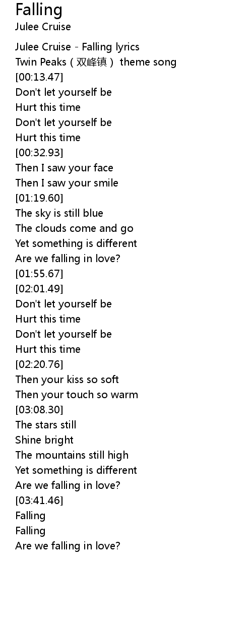 | [00:04.69] | Julee Cruise - Falling lyrics |