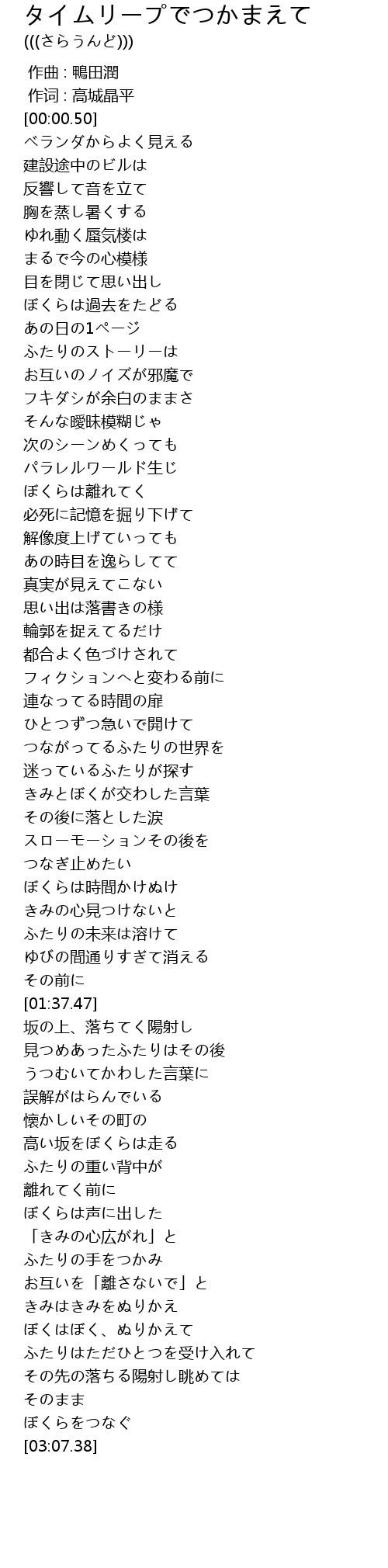 | [01:02.70] | 連なってる時間の扉 |
