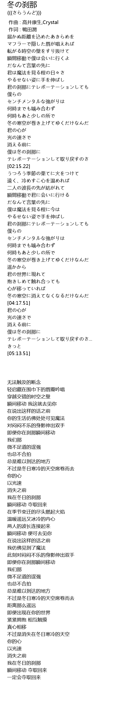 | [02:05.20] | 僕は冬の刹那に |