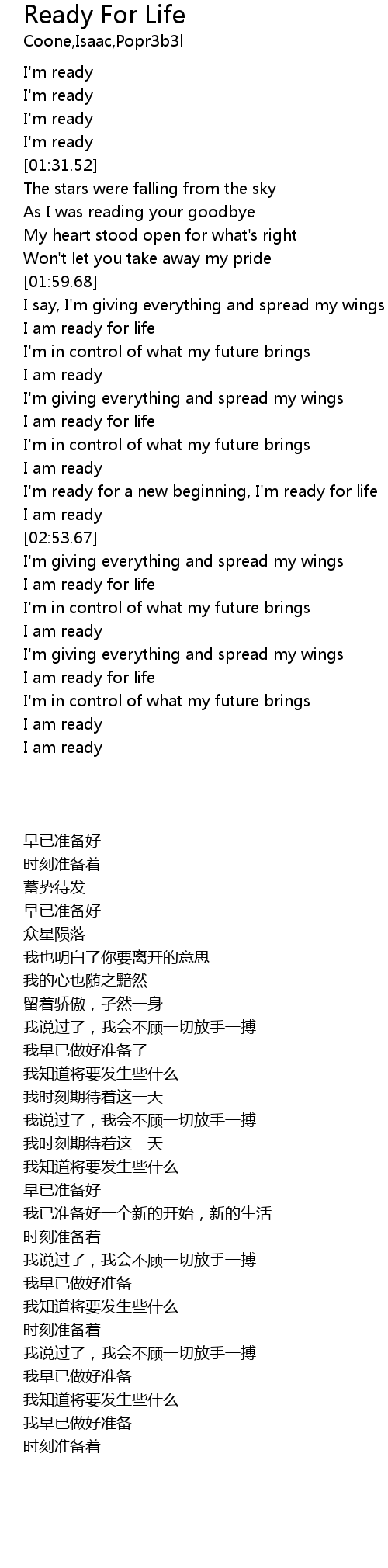 | [02:40.92] | I'm ready for a new beginning, I'm ready for life |