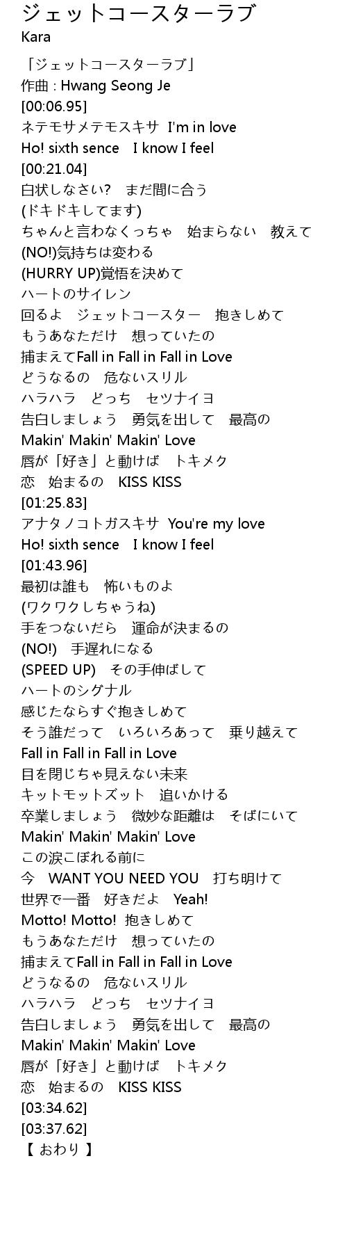 | [00:01.95] | 「ジェットコースターラブ」 |
