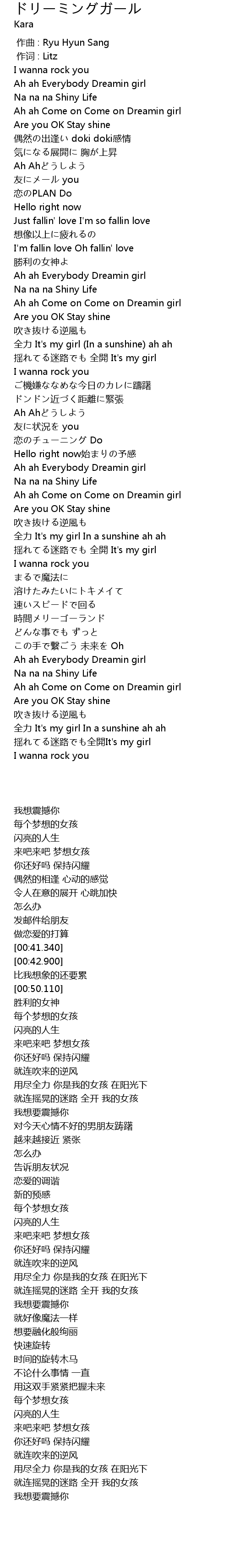 | [02:50.940] | Ah ah Come on Come on Dreamin girl |