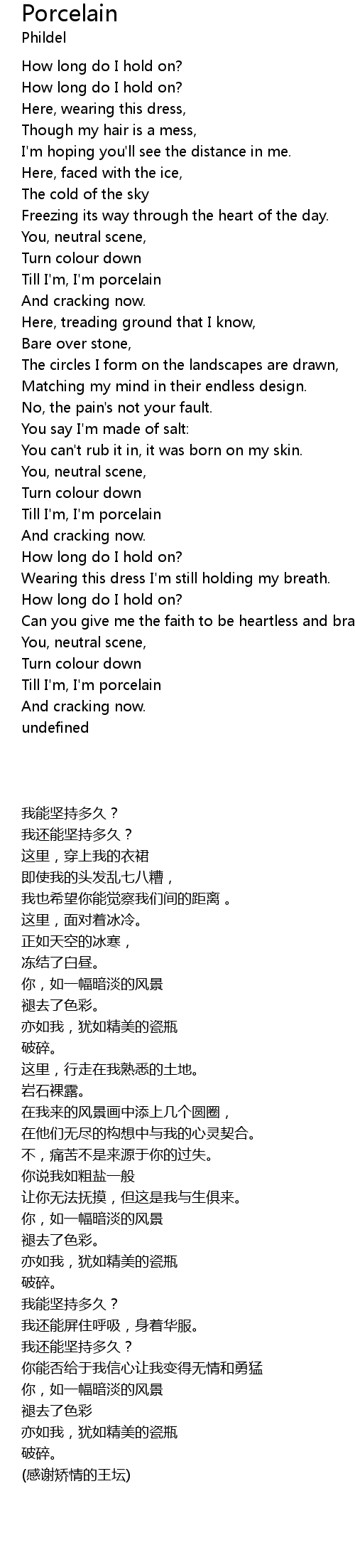 Till I'm, I'm porcelain |