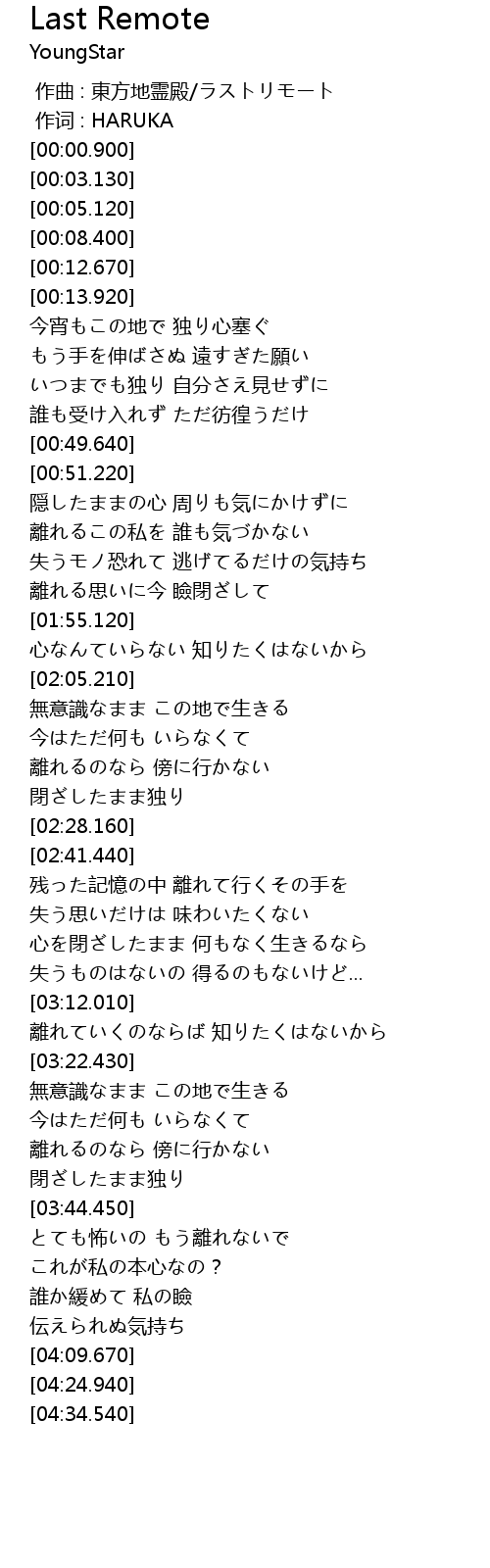 | [00:00.300] | 作词 : HARUKA |