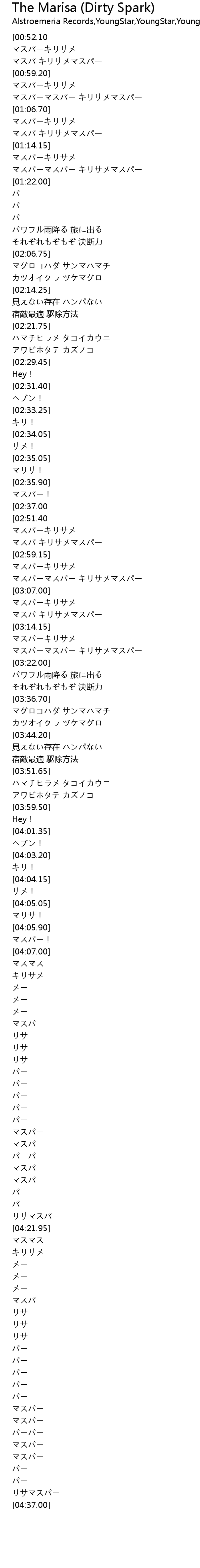 | [00:54.95] | マスパ キリサメマスパー |