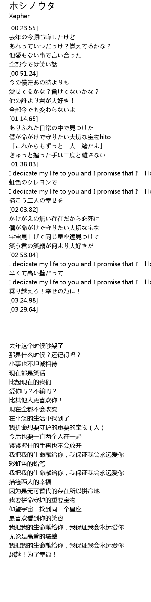 | [02:53.37] | I dedicate my life to you and I promise that I' ll love you forever. |