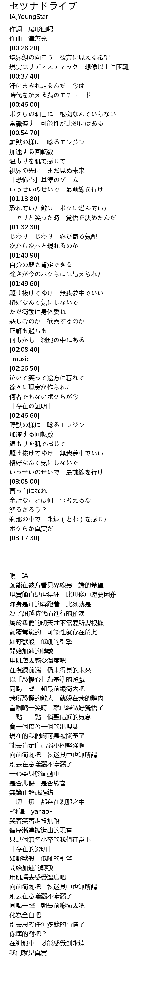 | [02:46.90] | 野獣の様に 唸るエンジン |