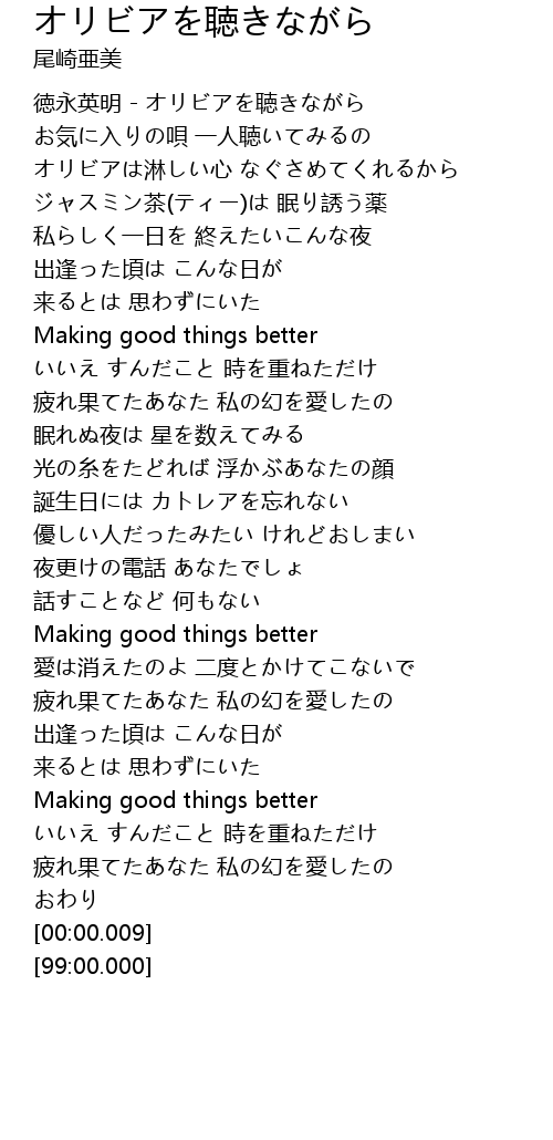 | [00:00.100] | 徳永英明 - オリビアを聴きながら |