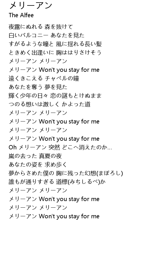 | Oh メリーアン 突然 どこへ消えたのか… | |