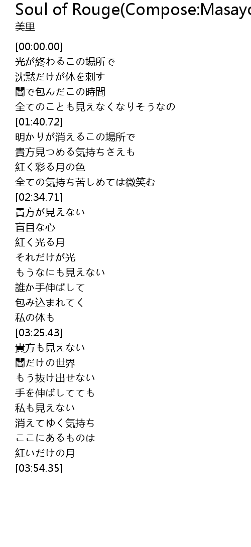 | Song | Soul of Rouge(Compose:Masayoshi Minoshima *ほおずきみたいに红い魂 ) |