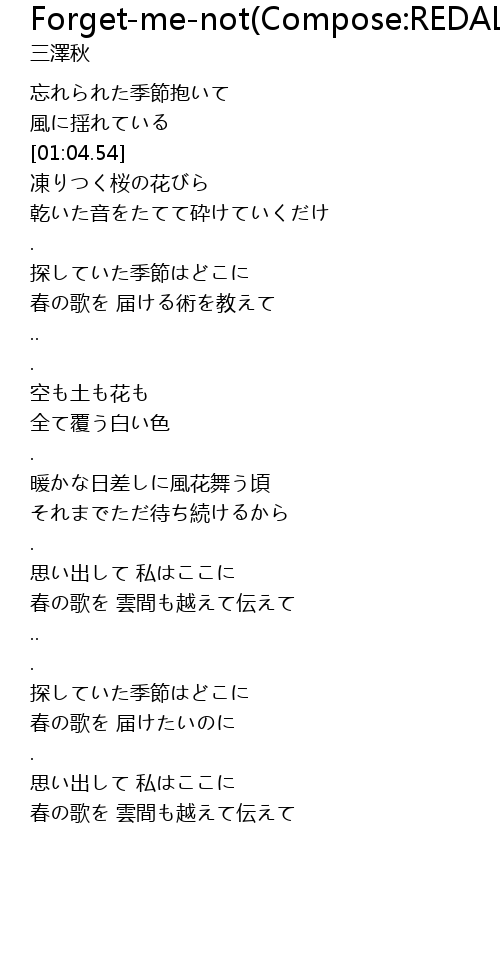 | [01:38.02] | 春の歌を 届ける術を教えて |