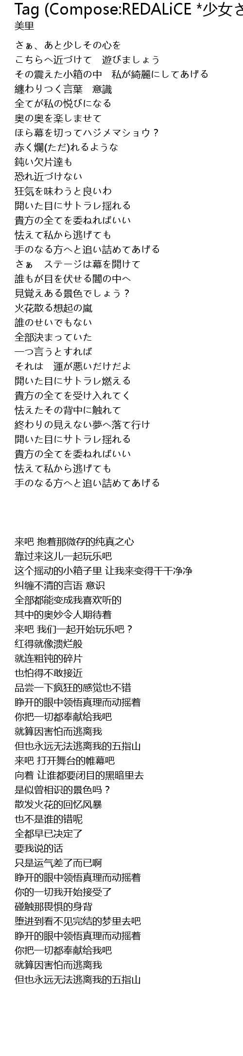 | Song | Tag (Compose:REDALiCE *少女さとり ~ 3rd eye) |