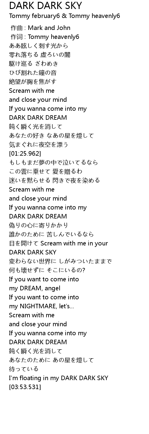 | [03:40.989] | I' m floating in my DARK DARK SKY |