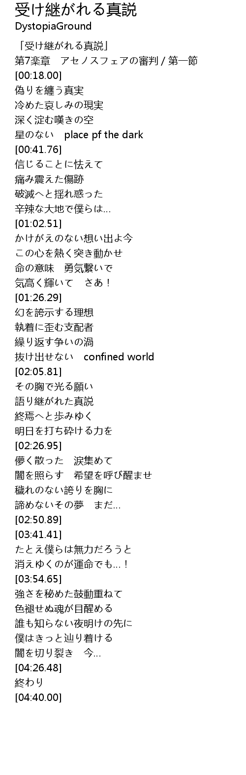 | [00:03.00] | 第7楽章 アセノスフェアの審判/第一節 |