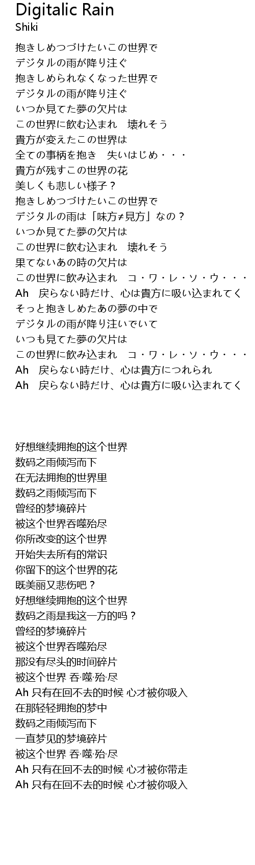 | [00:49.81] | デジタルの雨が降り注ぐ |