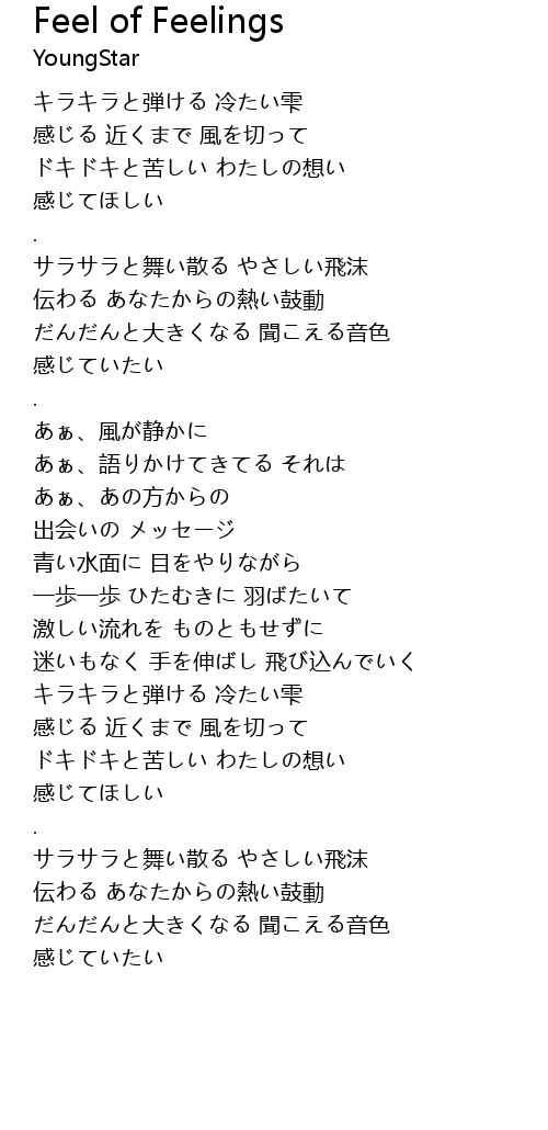 | Song | Feel of Feelings |