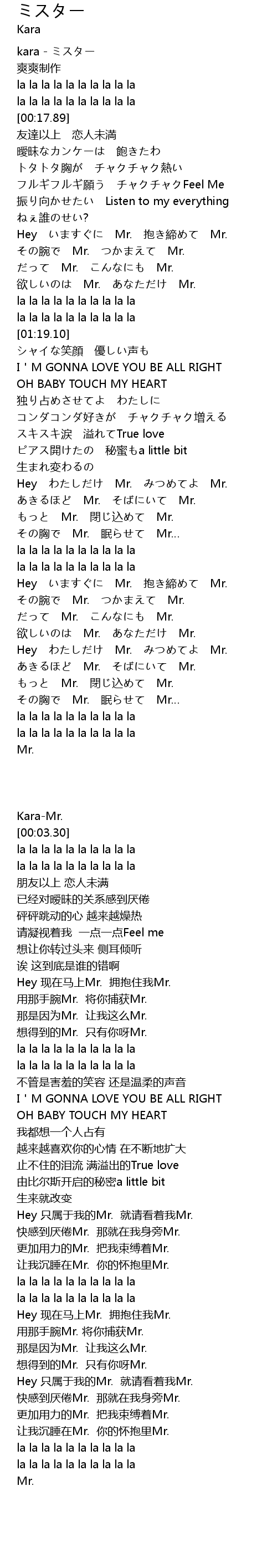 | [02:35.73] | Hey わたしだけ Mr. みつめてよ Mr. |