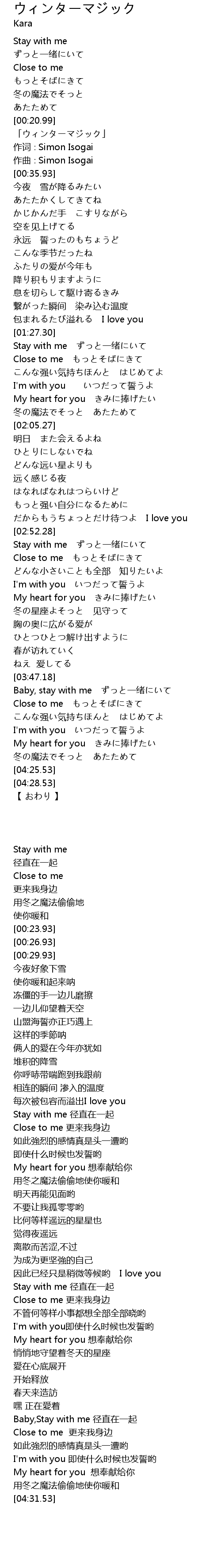 | [02:53.48] | Stay with me ずっと一绪にいて |