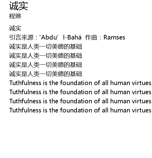 | 引言来源:′Abdu’l-Bahá 作曲:Ramses | |