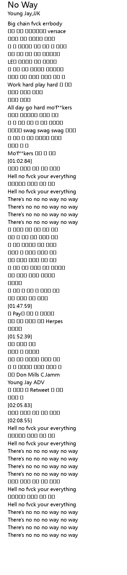 | [02:19.40] | There's no no no way no way |