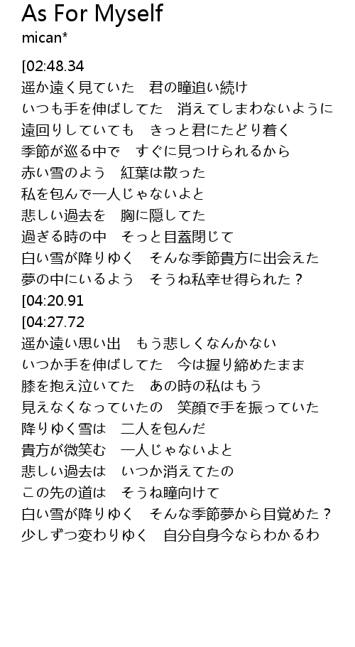 | [03:39.74] | 降りゆく雪は 二人を包んだ |