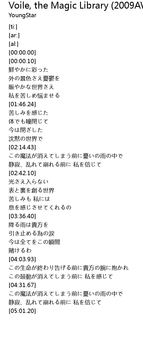 | [04:33.40] | この魔法が消えてしまう前に憂いの雨の中で |