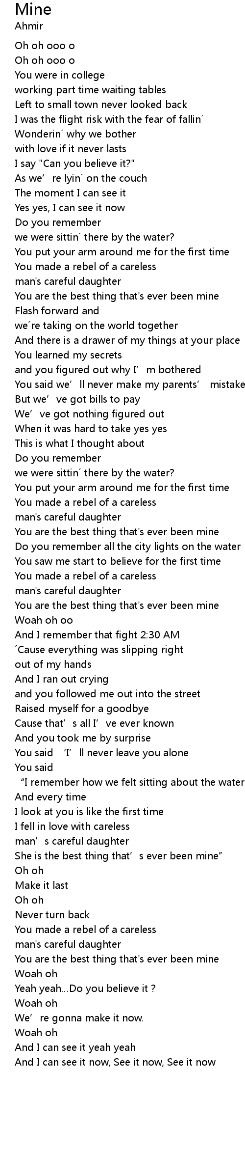 | You are the best thing that' s ever been mine | |