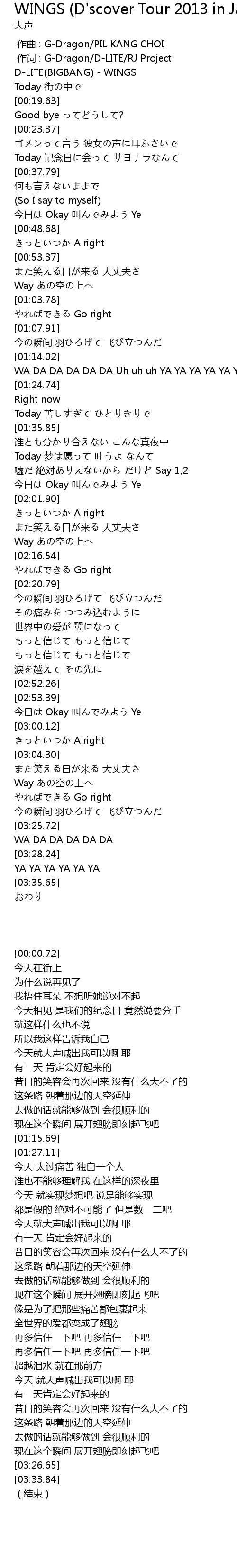 | [00:00.72] | D-LITE(BIGBANG) - WINGS |