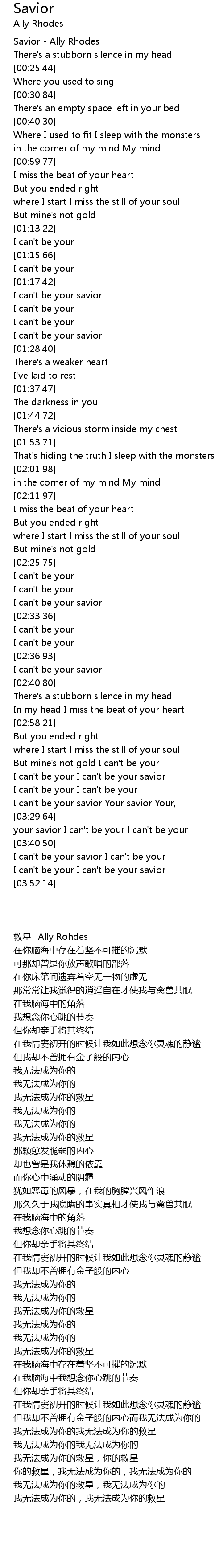[03:19.97] I can't be your savior Your savior Your,