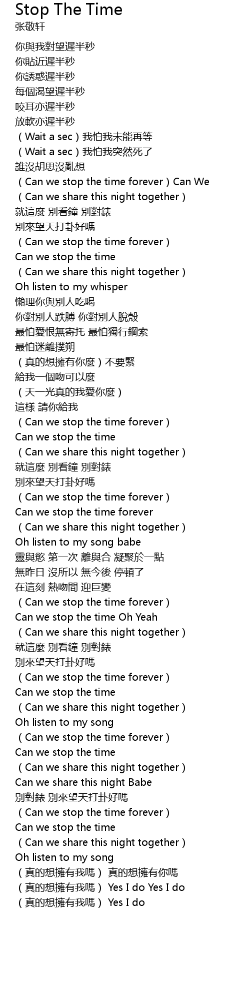 | [02:43.89] | Can we stop the time Oh Yeah |