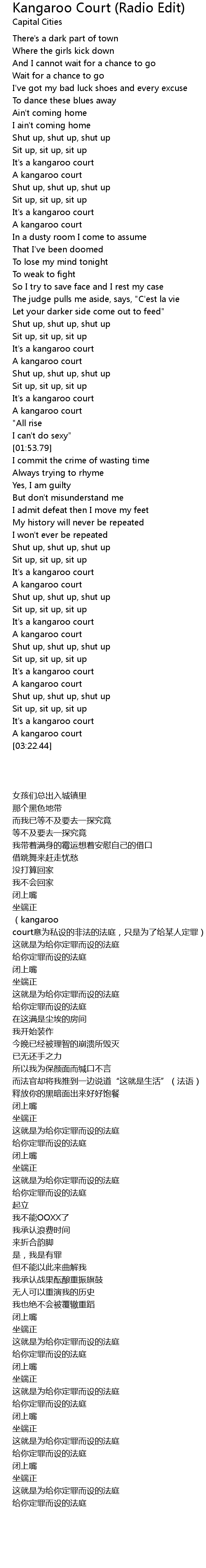 Kangaroo Court (Radio Edit) Lyrics