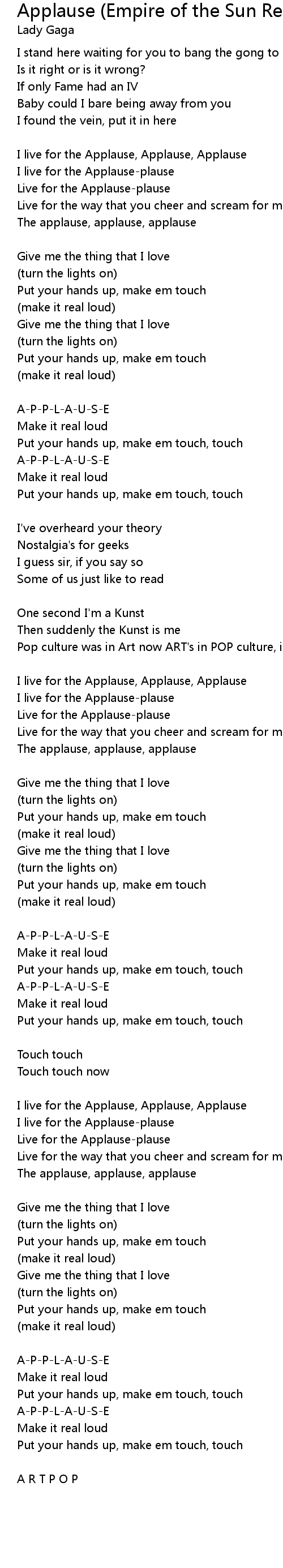 Applause (Empire of the Sun Remix) Lyrics