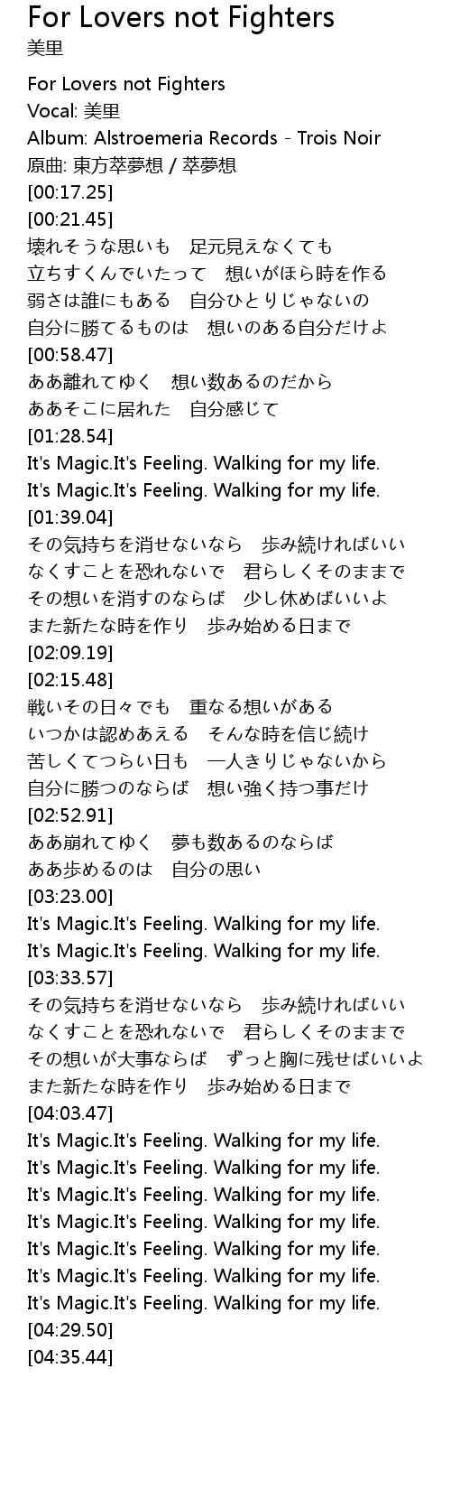 | [04:07.21] | It's Magic.It's Feeling. Walking for my life. |