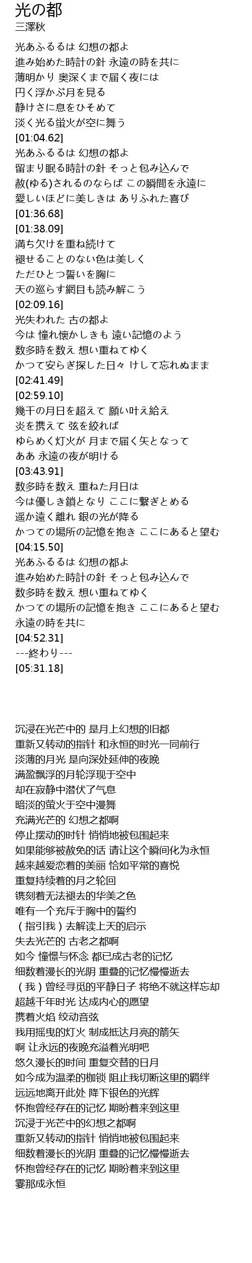 | [01:04.97] | 光あふるるは 幻想の都よ |