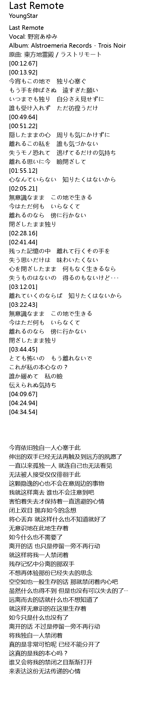| [00:05.12] | Album: Alstroemeria Records - Trois Noir |