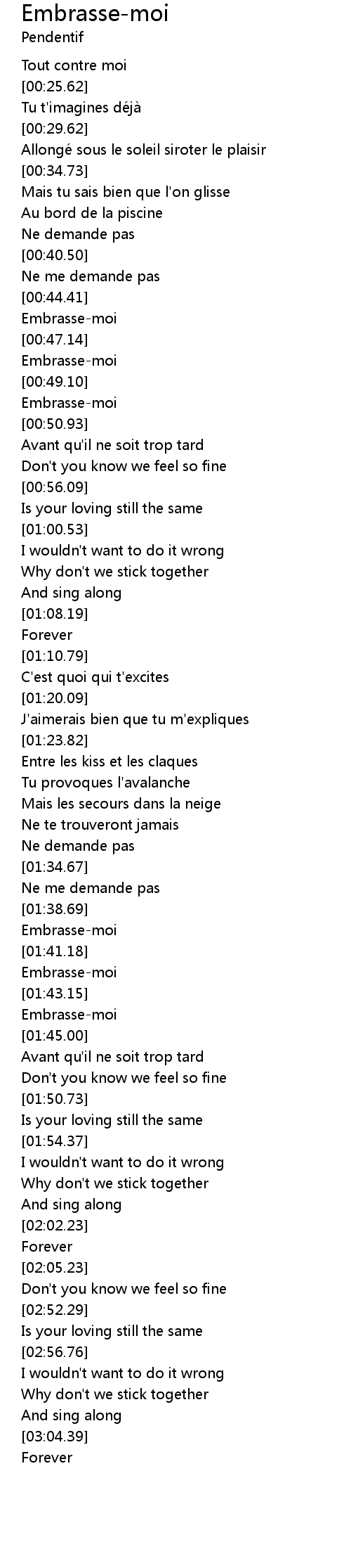 | [01:41.97] | Embrassemoi |