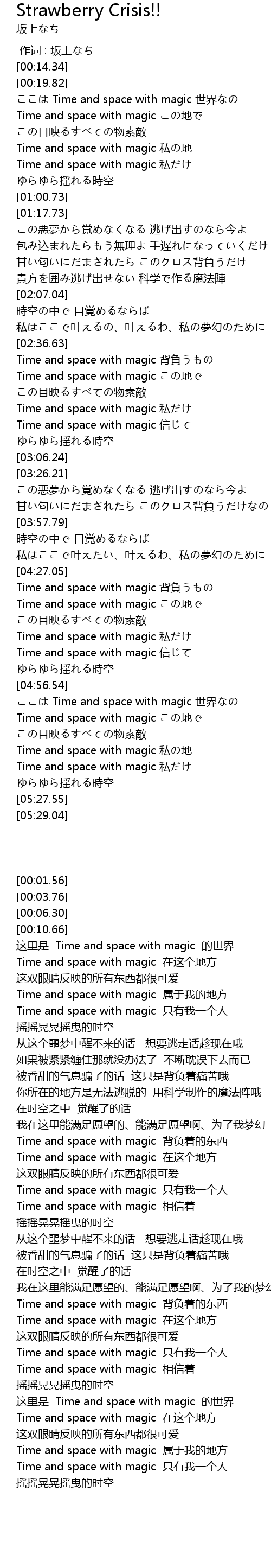 | [04:57.36] | ここは Time and space with magic 世界なの |