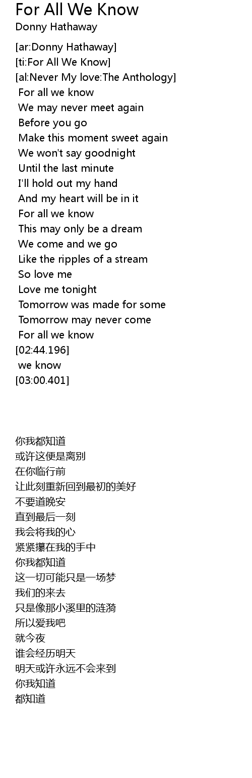 [ti:For All We Know]