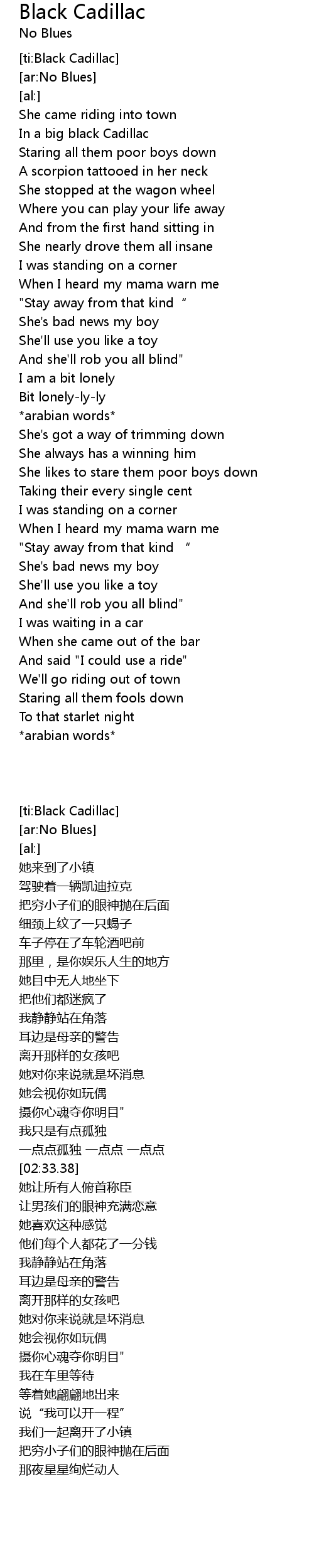 | [ti:Black Cadillac] | |