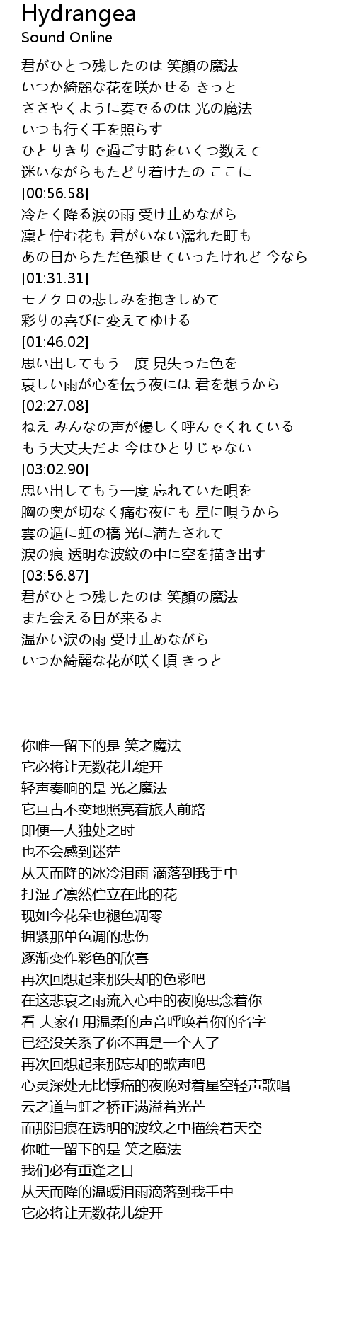 | [03:57.56] | 君がひとつ残したのは 笑顏の魔法 |