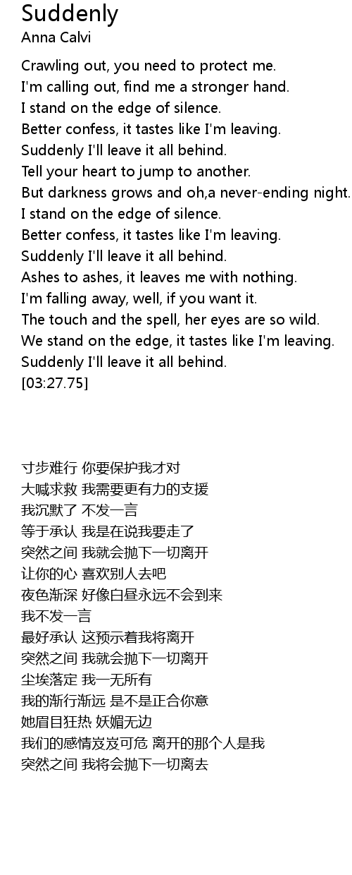 Suddenly I'll leave it all behind. |