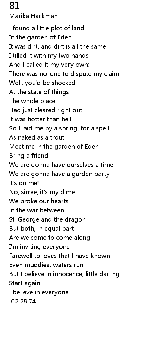 | [00:14.54] | In the garden of Eden |