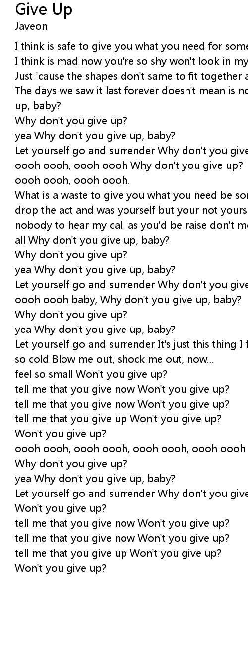 | oooh oooh, oooh oooh, oooh oooh, oooh oooh Why don't you give up, baby? | |