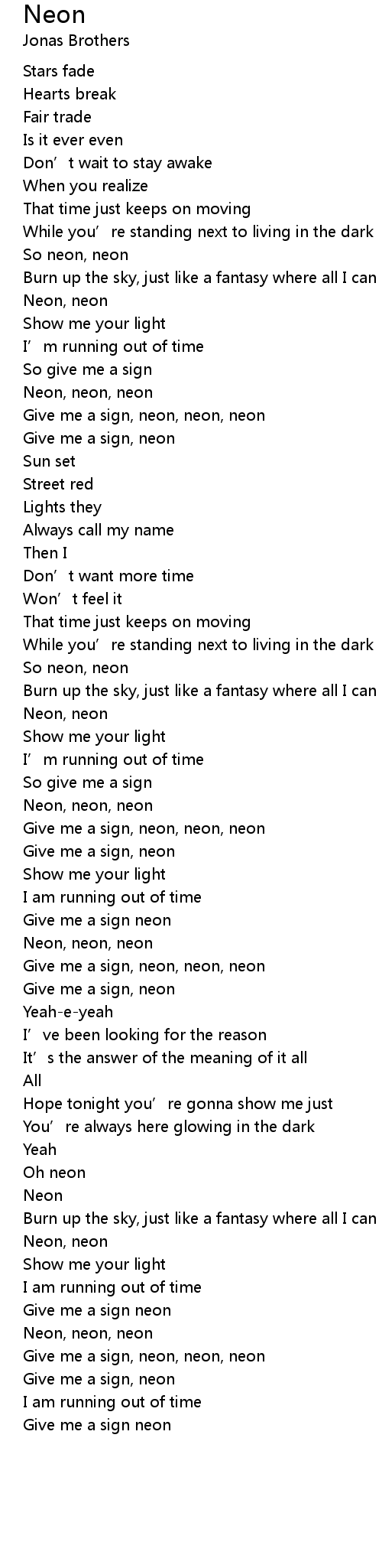 | Give me a sign, neon, neon, neon | |
