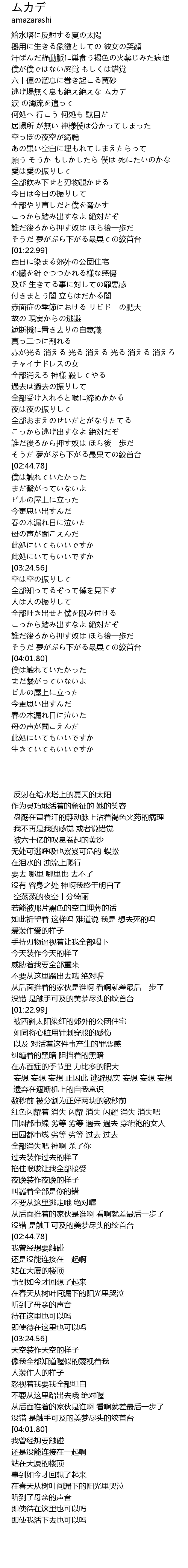 | [01:41.17] | 及び 生きてる事に対しての罪悪感 |