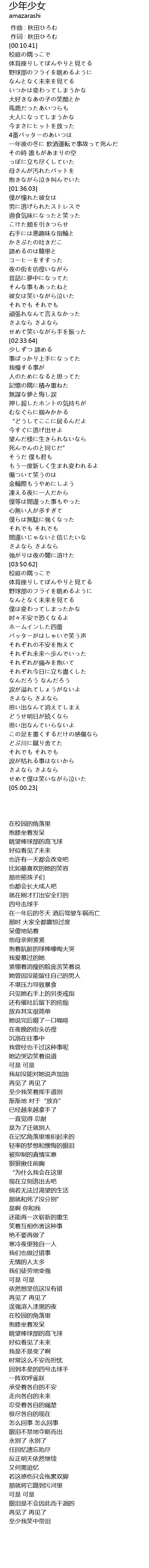 | [04:06.00] | 野球部のフライを眺めるように |