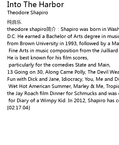 | [00:23.46] | theodore shapiro简介:Shapiro was born in Washington, |